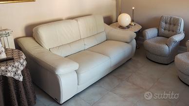 due divani due e tre posti seduta d'arte vera pelle, bianchi condizioni perfette vendibili anche singolarmente 450€ il tre posti 400€ il due posti 800 se venduti in coppia