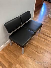 Divani due posti senza braccioli per sala d'attesa in ottimo stato. In totale sono 2 divani di colorazione nera. Perfetti per dale d'attesa, studi medici, uffici.