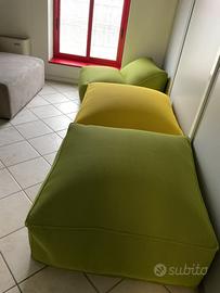 Abbiamo a disposizione una poltrona e un pouf e una poltrona ad angolo . Pouf altissimo e molto comodo va abbinato con poltrona molto comoda ed di un colore fantastico perfetta peril giardino bordo piscina al mare o a casa !! In qualsiasi spazio preferito in promozione prendi tre il terzo è gratis . Ci sono rimati pochissimi pezzi . Hai capito bene compra tre e il terzo è gratis ! Cioe ti regalo io 180 euroooo
