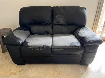 Vendo 2 divani in ecopelle, 4 posti con penisola + 2 posti. Le condizioni sono queste: quasi completamente sfogliati, la penisola da 4 posti è come quello da 2 posti, strutturalmente amcora ottimi come seduta e molto comodi.