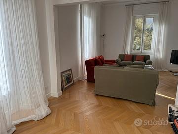 Set di divani sfoderanili. Uno da tre e due da due posti. Rivestimento recente di alta qualita’.