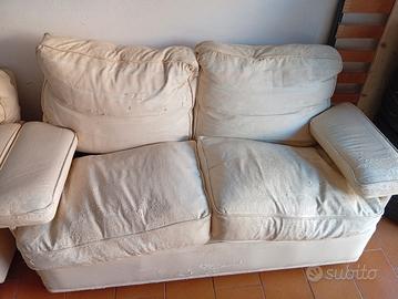 Vendo n. 2 divani due posti con braccioli e in piuma d'oca originali marca FRAU da rivestire. Ritiro a carico dell'acquirente.