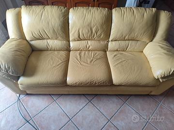 Per cambio modello si vendono divani in buono stato in pelle con piedi in legno , due da tre posti e uno da due posti..