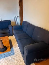 I divani sono usati e presentano segni visibili di utilizzo: in alcune zone il colore è più chiaro o più scuro e sono presenti alcune macchie, come visibile nelle foto. La struttura è comunque solida e sono ancora molto comodi.