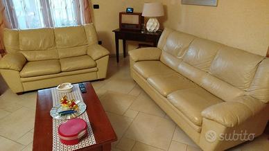 Vendo 2 divani, uno da 2 posti e l’altro da 3 posti. Divani molto comodi, usati in ottime condizioni. Tavolino in legno.