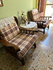 Divani in legno con cuscini + tavolino da fumo