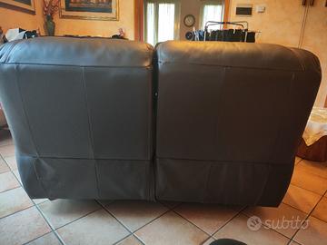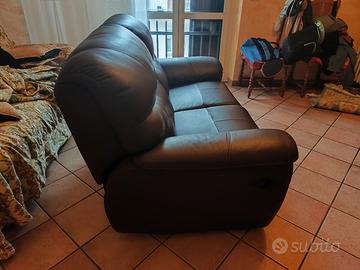 2 divani in pelle senza nessun segno il tre posti si alzano i piedi il due posti si abbassa pure lo schienale inclusi copridivano fatti a mano molto spessi
