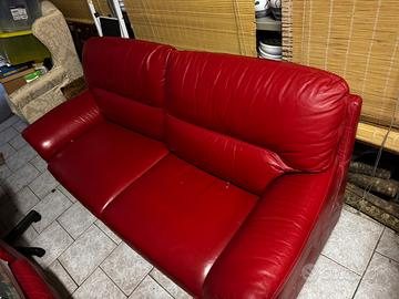 Vendo coppia di divani in pelle di fattura artigianale colore rosso amaranto in perfette condizioni dimensioni 155x80 e 190x80 di cui uno, quello piu grande, con letto da una piazza e mezzo. Prezzo 600€. Vendibili anche separatamente.