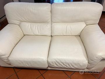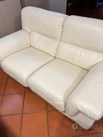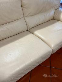 Divano in pelle bianca centrale con 3 sedute insieme a 2 divani da 2 sedute.
