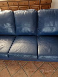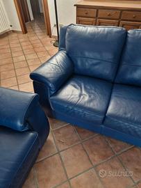 Divani in pelle blu, marca Chateau d'Ax, di ottima fattura e in buonissime condizioni. Acquistati intorno agli anni 2000. Dimensioni cadauno: L 200cm, H 78cm, P 85cm (Ritiro a proprio carico in loco, piano strada - no spedizione)