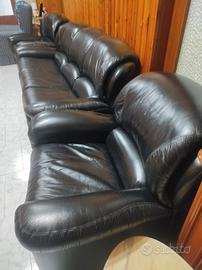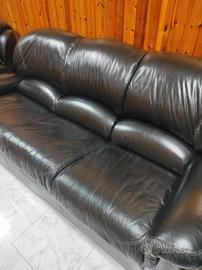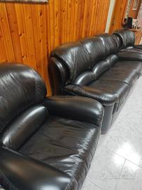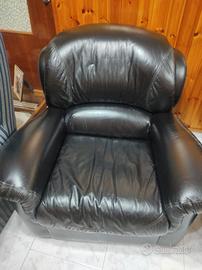 Vendo divano in pelle nero 3 posti, più due poltrone singole. Prezzo trattabile
