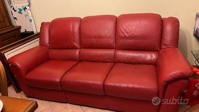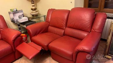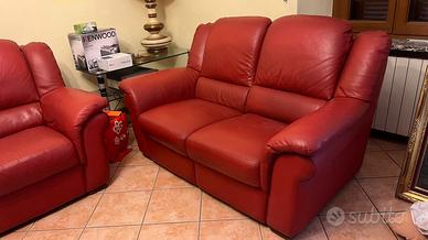 Vendo due bellissimi divani in pelle Chateau d’Ax Color mattone , due e tre posti Il tre posti ha meccanismo poggia piedi … Ancora in buonissimo stato , piccolo segno da poter ritoccare , vedere foto per capire l’occasione! Solo a persone veramente interessate!