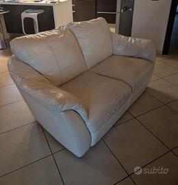 Due divani da due posti ciascuno, in pelle chiara in buono stato. Uno dei due dotato di sedute relax con poggiapiedi azionabile manualmente. Vendo anche separatamente
