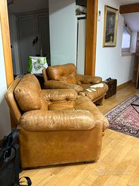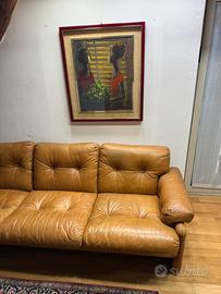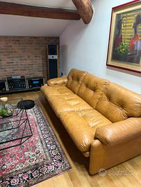 Il design richiama lo stile anni ’70/’80, perfetto per chi ama un tocco vintage ma senza rinunciare al comfort. La pelle ha sviluppato una piacevole patina nel tempo, conferendo al divano un carattere unico.
