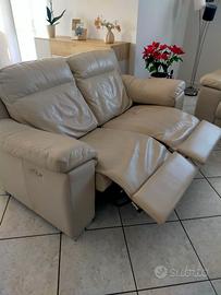 Come da titolo vendo due divani in pelle di cui uno reclinabile con sistema automatico. Vendo anche separatamente. Per maggiori info contattatemi