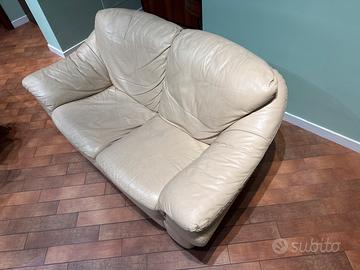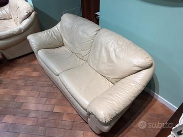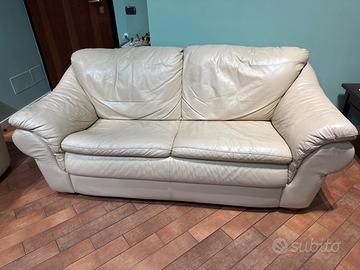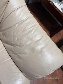 Vendo 2 divani in pelle color crema da 2 e 3 posti per cambio arredamento. Possibilità di vendita anche singolarmente. I difetti dei divani sono riportati in foto.