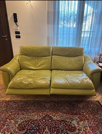 Il divano da tre posti ha doppio movimento, Relax elettrico funzionante . Con segni di usura e seduta di sinistra da sistemare.