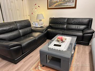 Un divano tre posti,uno in due posti in pelle marca CHATEAUX in ottime condizioni pagato sei mila euro più tavolo da salotto acquistato da poco