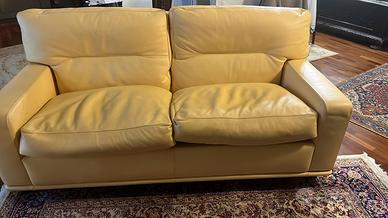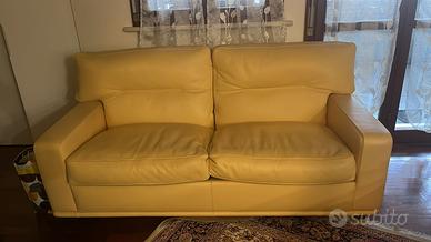 2 divani speculari in pelle colore ocra con piedi in legno in ottime condizioni. Lunghezza: 180 cm Altezza: 80 cm Profondità: 85 cm Solo ritiro a Parma, no consegna.