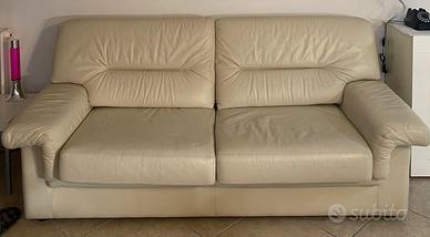 2 Divani in pelle color panna. Un divano è da 3 posti e l’altro da 2. Usati ma in buono stato.