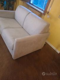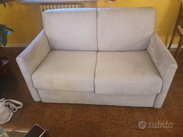 divano letto ad una piazza e mezza in pelle scamosciata, colore avorio, prezzo 400 €