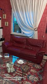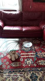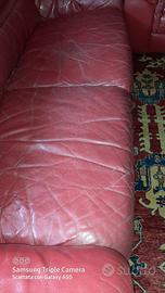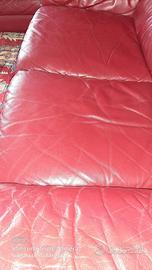 Cedo due divani in pelle usati, color rosso come da fotografia, uno a due posti e uno a tre posti.