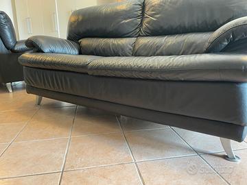 Divani in pelle nera, misure lunghezza 200, larghezza 85 e altezza 95. Usati ma in ottimo stato
