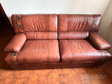 Vendo due divani in pelle di cui uno letto, entrambi ancora in ottimo stato. Divano 3 posti a letto 195x90x90 Divano 2 posti 165x90x90 Se presi in coppia prezzo trattabile.