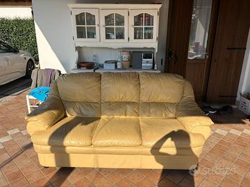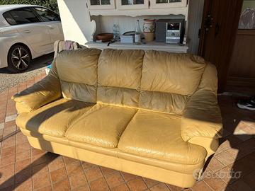 Vendo due divani in pelle color giallo uno da due posti e uno da 3 tenuti abbastanza bene