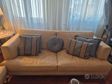 bellissima coppia di divani di ottima qualità in vera pelle pieno fiore valdichienti colore beige