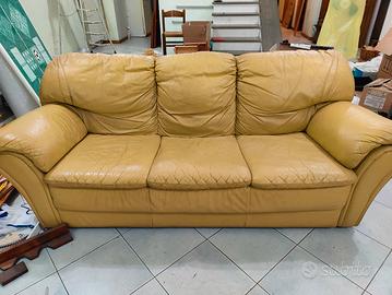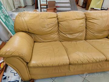 Vendo coppia di divani coordinati in pelle, gialli. In buono stato a parte piccoli graffi e segni di normale usura. Siamo a 40 minuti da Roma, autostrada uscita Ferentino.