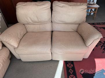 Vendo divani in pelle in buone condizioni. Quello piu grande ha un letto estraibile mentre quello più piccolo ha il poggiapiedi. No perditempo. Visto e piaciuto. Trasporto a carico dell’acquirente.