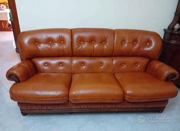 Divano in pelle tre posti + due poltrone singole Tenuti bene