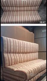 vendo pregiati divani / panche da seduta artigianali, in legno. il tessuto di rivestimento è in seta. prodotte da un artigiano locale. disponibili n. 4 divani. Misure L 163, H 104, P 58. Euro 300 cadauna