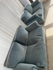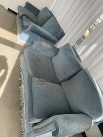 Vendo 2 divani in velluto celeste 2 posti. Prezzo 150€ x 2 divani - trattabile Ritiro in loco a carico del compratore URGENTE Segni di usura, occorre comuque lavaggio