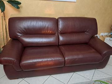 Vedo 2 divani in vero cuoio, uno è due posti mentre l’altro è un tre posti. Tenuti benissimo. Non hanno graffi né segni di usura.