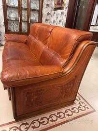Vendo due divani ULIVI in vero cuoio italiano identici tre posti dotati di bracciolo. Base in legno e rilevi nella parte inferiore e posteriore.