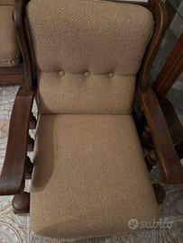 In legno massello. Cuscineria sfoderabile. nessun segno di deformazione. divano 3 posti misure larghezza 190 cm profondità 95 cm altezza 94 cm le 2 poltrone misurano larghezza 76 cm profondità 95 cm e altezza 94 cm