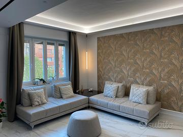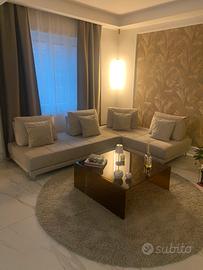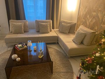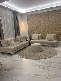 Sono 2 divani componibili da 2m x 1m ciascuno, con schienale che si può posizionare a proprio piacere, molto comodi anche per dormire, dal momento che gli schienali si possono togliere, dí colore beige chiaro, tenuti benissimo, non sono presenti difetti, nel prezzo è compreso il pouf e cuscini.