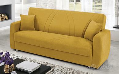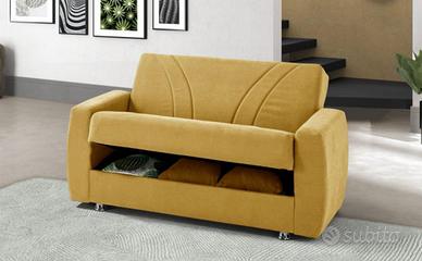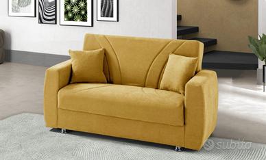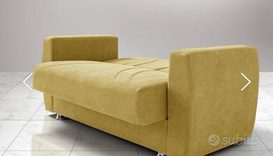 Vendo n. 2 divani letto con vano contenitore (1 due posti di cm 158x84x91 e 1 tre posti di cm 225x84x91) color mostarda . (Si vendono anche separatamente )