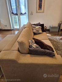 Vendesi due divani al prezzo di uno, in tessuto di cotone colore beige; buono stato, sfoderabili e lavabili. Uno è un divano tre posti trasformabile in letto matrimoniale, con materasso inutilizzato, misure: 225L*102P*68H, l'altro è un divano due posti misure: 190L*102P*68H; ritiro presso domicilio venditore.