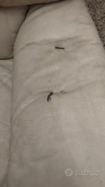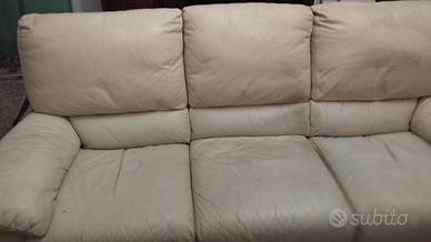 Il divano a 3 sedute ha reclinazione schienale e estrazione della pedaliera manuale. Buone condizioni. Rivestimento in pelle. Taglio su di un bracciolo del divano a 3 sedute.