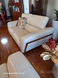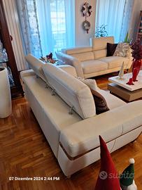 DUE DIVANI NICOLETTI IN PELLE FIORFIORE BIANCA, UNO: TRE POSTI E L'ALTRO: DUE POSTI COME NUOVI PER STRUTTURA E PELLAME, COME IN FOTO. TRASPORTO DA CONCORDARE.