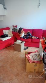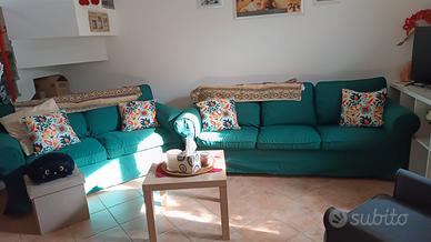 vendo un divano 2 posti,uno 3 posti, un puff, corredate di 3 coperture,una rossa,una beige,una verde . ritiro presso mio domicilio entro 28/04.