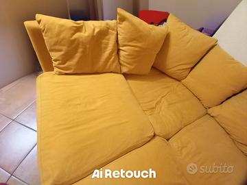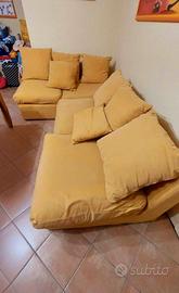 2 divani lineari come da foto combinabili in più modi: ad L, lineari, matrimoniale Sfoderabili e lavabili completi di nr 8 cuscini sfoderabili Marca OVVIO misure lunghezza 160, profondità 100, altezza 72