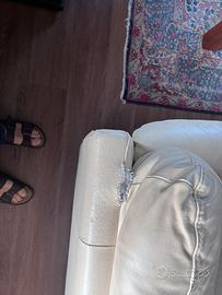 Vendo due divani in pelle color avorio con piedini color legno scuro.