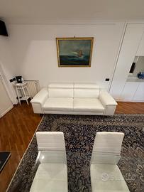 Divani Poltronesofà bianco in pelle tre posti (quattro sedute) e due posti (tre sedute) . 4 posti in pelle DIM (CIRCA) 101x244x109 mecc. schienale. (prime 3 foto) 3 posti in pelle DIM (CIRCA) 101x216x109 mecc. schienale (seconde 3 foto) Nessun segno, nessuna macchia, usato pochissimo per la casa che a suo tempo era disabitata per motivi di lavoro fuori Roma, vendo per sostituire con divano letto. Si vendono anche separatamente € 800 euro il 3 posti, € 1000 il 4 posti.