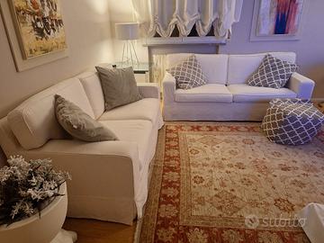 divani fatti a mano, artigianalmente, con molle, condizioni eccezionali, come nuovi, tessuto interamente sfoderabile, dimensioni 195x85x85 di altezza e 180x85x85.