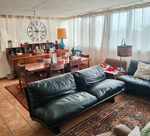 Divani Poltrone Frau in pelle nera di altissima qualità. Design Modernariato vintage in ottimo stato di conservazione.