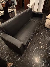 I divani sono due neri identici, che diventano letto e sono dotati di box interno. Come potete vedere sono in finta pelle e quindi causa l’età sono rovinati ma ancora comodi e utilizzabili (ho anche i due copridivani).